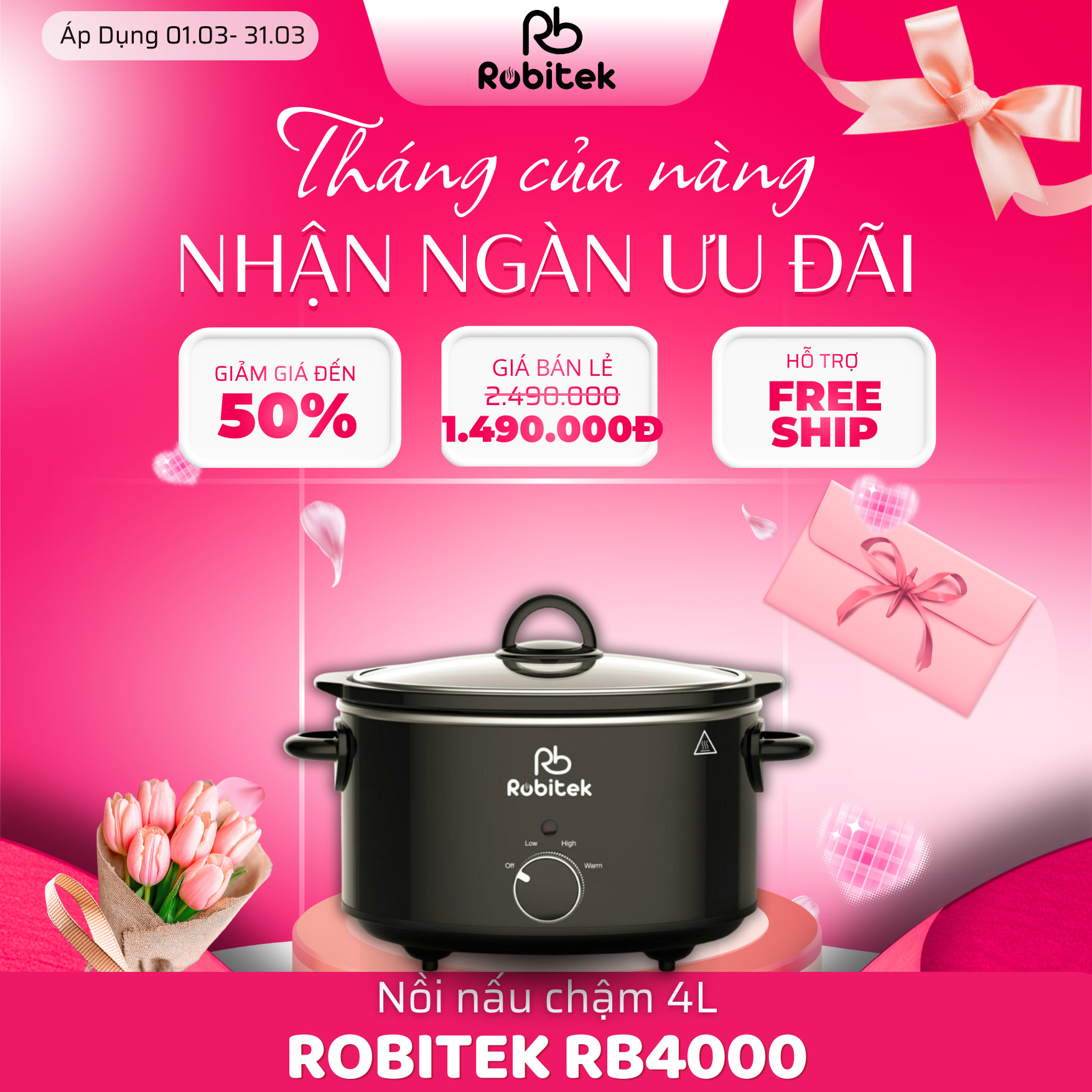 NỒI NẤU CHẬM ROBITEK RB3000 & RB4000 – DUNG TÍCH 3L, 4L – NINH HẦM THỊT TIỆN LỢI, PHÙ HỢP CHO GIA ĐÌNH